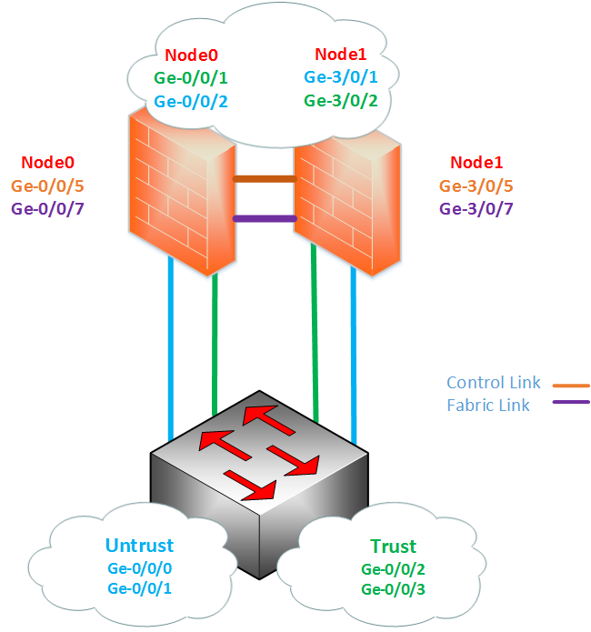 Physically connect the 2 devices together to Create the control and fabric (data) links. Nodes in cluster use these links to communicate between each other about the cluster health, status and other traffic information. Control link is used to configure the nodes in the cluster and the Data link allows session synchronization between nodes. The Control and Fabric interfaces are hardware specific, so different models have will use different ports. You can see each specific model’s control and fabric ports via the Juniper Knowledge Centre