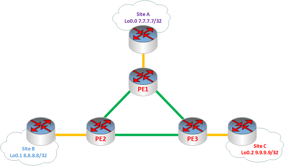 This is my base configuration for my 3 PE routers